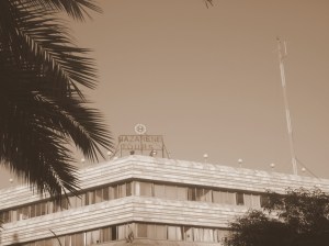 This provocative message to Christians stands out a junction heading north towards the Synagogue where Jesus first preached. Behind is the tall turret of the famous huge and grand looking Bisilica Church. It says “and whoever seeks a religion other than Islam, it will never be accepted of him, and in the hereafter he will be one of the losers. – Holy Quran”