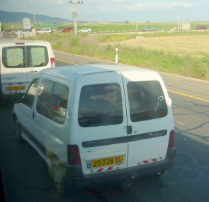 The chap who has this Citroen van has the chain thing and a fish too 🙂   By the way its going through a highway northward through Ha Meggido, whats commonly known as the place of ‘Armageddon’.